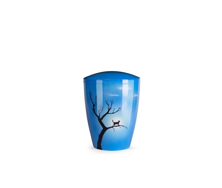 Hoogwaardige urnen van natuurlijk materiaal worden individueel met de hand beschilderd met behulp van de airbrushtechniek. De verf wordt aangebracht als een heel fijn stof, waardoor de fijnste kleurverlopen zichtbaar worden. Elke urn is uniek. 508-500-A3 Prijs 158,00 inhoud 0,5 liter Doorsnede 9,6 cm Hoogte 13 cm Oppervlakte parelmoer Gewicht 0,1 kg