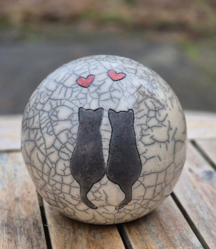 Duo kattenurn met rode hartjes