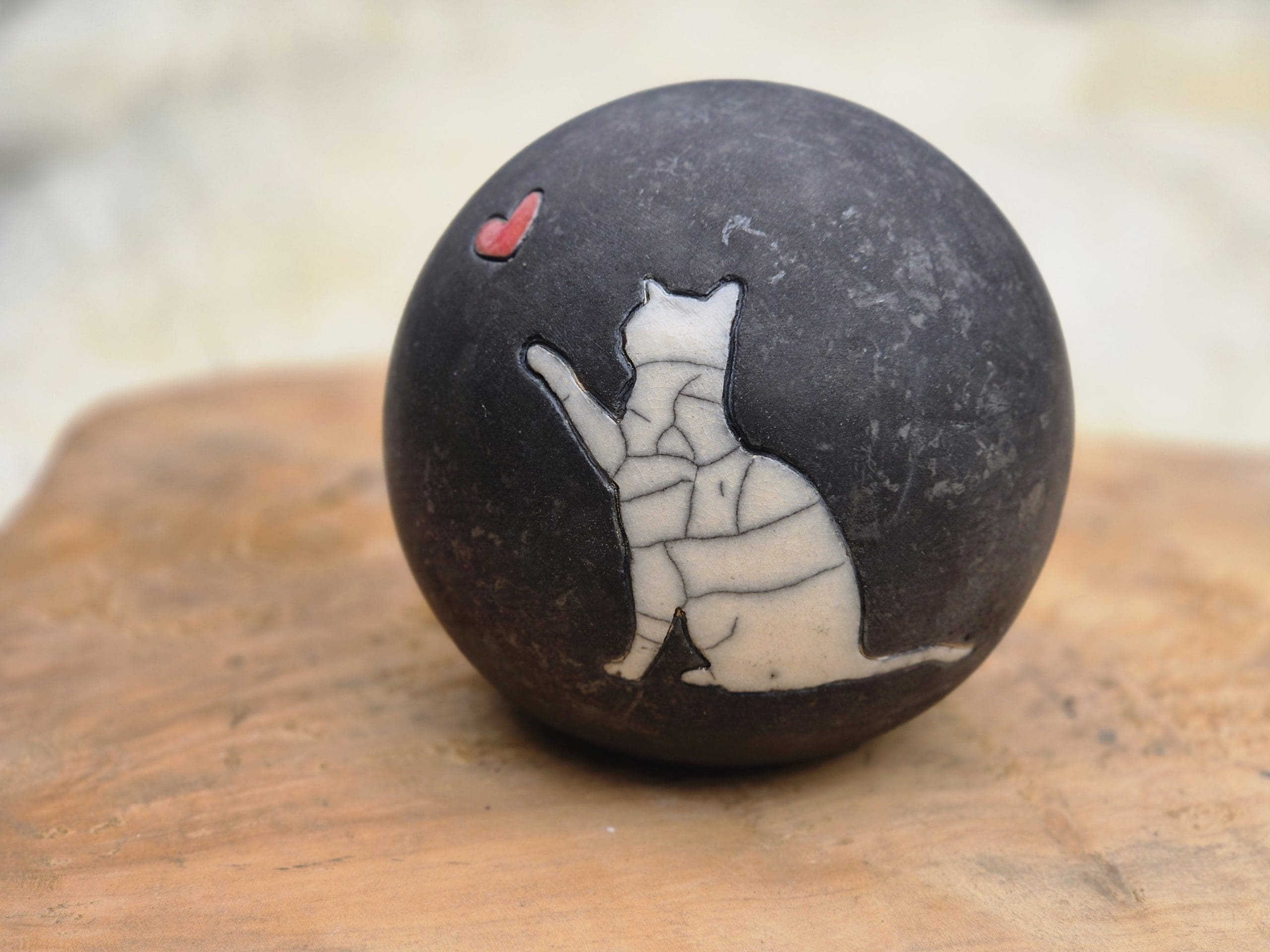 Kattenurn donker met rood hartje . Een unieke handgemaakte urn.