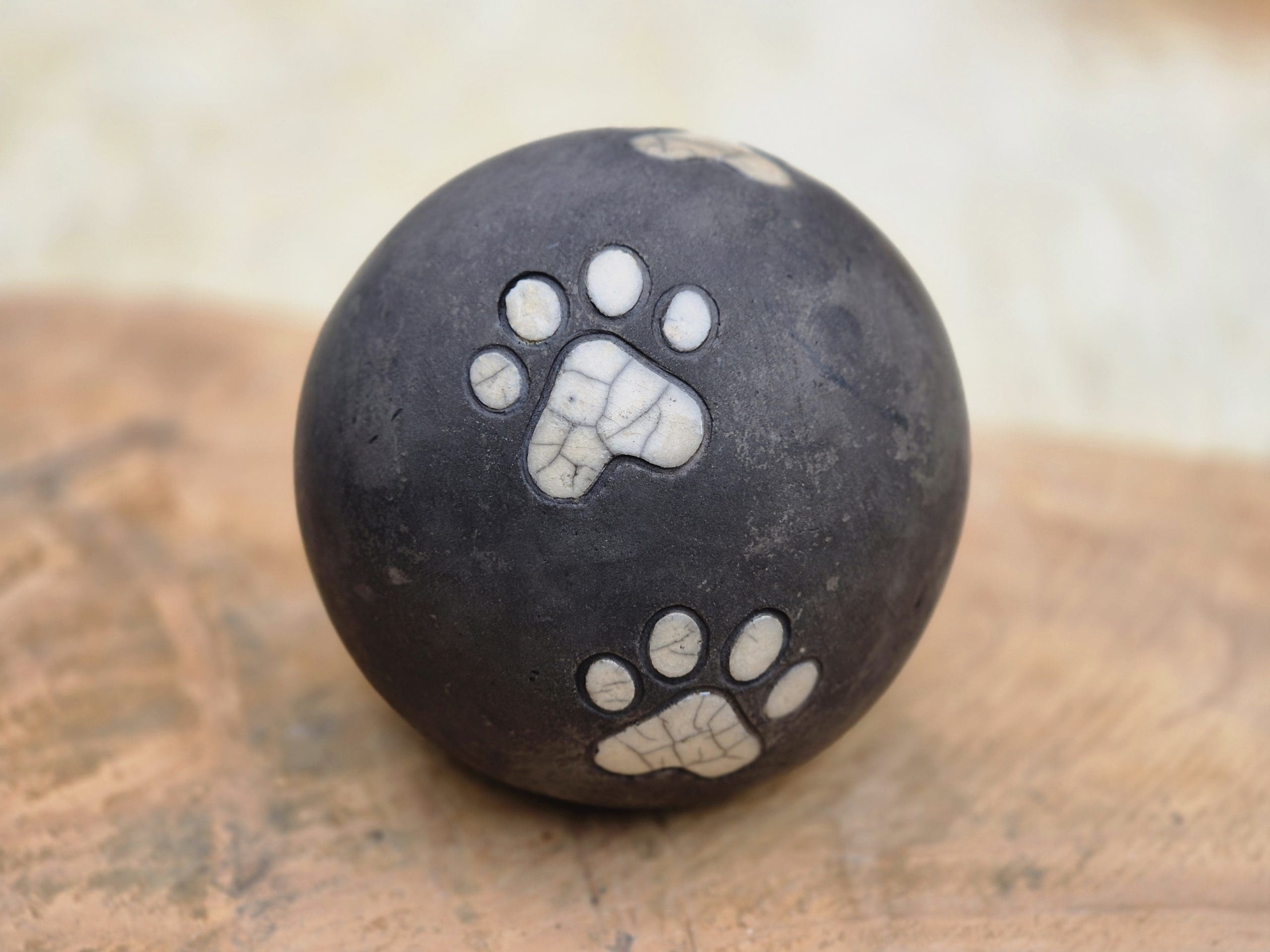 Donkere dierenurn met doorlopende pootjes. Een unieke handgemaakte urn.